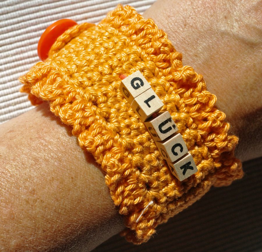 Und falls ihr noch einen ganz individuellen Wunsch habt. Dann laßt mich das wissen, denn ich habe noch genügend Wollreste. Auch in anderen Farben. Auch sind in der Zwischenzeit schon wieder neue Armbänder entstanden, so dass ihr auch nur einen Moment Geduld haben müßt und dann bekommt ihr diese auch zu sehen.